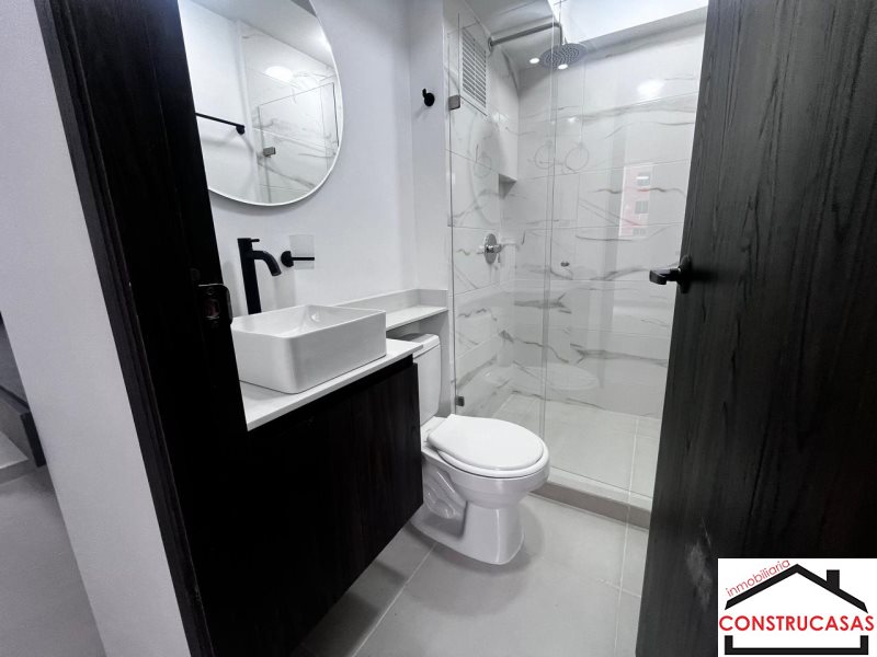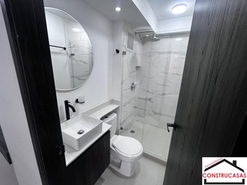Hermoso Apto para estrenar, con un área de 50 metros, 2 alcobas con closet, 2 baños con cabina en vidrio templado, piso en cerámica, sala comedor, coc